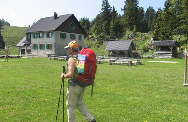 Nadaljujemo desno v smeri Doma na Menini planini, po poti, ki preči pas gozda. S parkirišča nadaljujemo čez travnik in pot, s katere se nam odpre lep razgled na verigo Kamniško Savinjskih Alp, nas hitro pripelje do Doma na Menini planini.